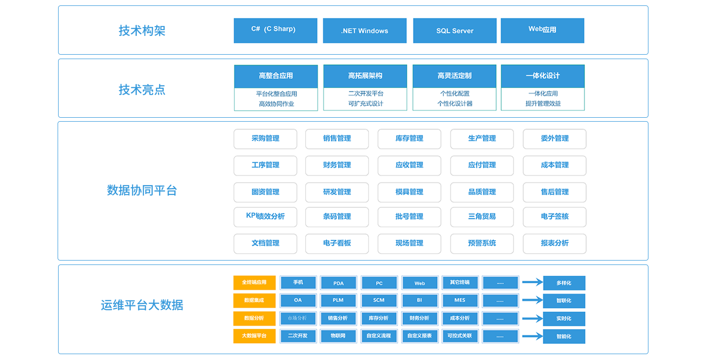 顺景开云唯一官网_开云(中国)有限公司,以制造为核心,将制造企业核心的生产管理需求与供应链管理、财务管理相结合完美结合,打造以生产计划为核心的全程一体化管理体系,打破各部门、各环节、各系统之间沟通和协作的壁垒,建立规范、灵捷、高效的业务流程,实现销售、PMC、采购、仓库、品质、人资、财务、工程技术部门等所有环节全程无缝管理,确保了数据信息在传递过程中的准确性、时效性和有效性,帮助企业快速反应、紧密协作、良好运营,更快推进业务发展,全面提升核心竞争力